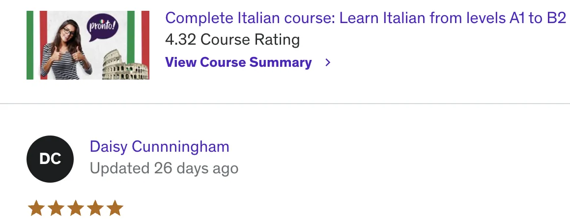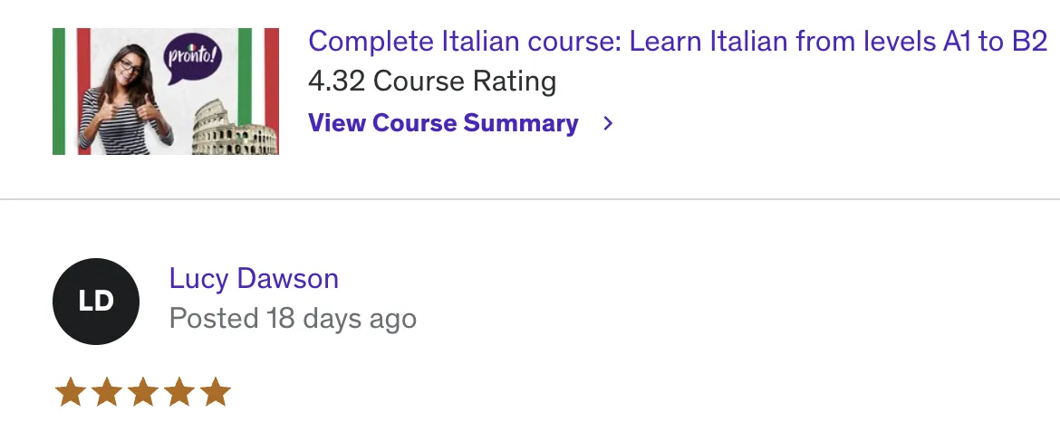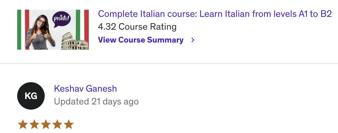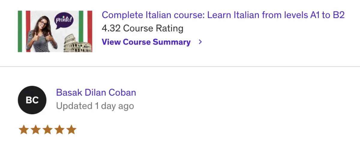 The best option to learn Italian and learn more about Italy! The teachers are amazing, and the way they teach makes it very easy to learn Italian and follow the lessons.